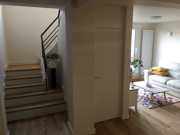 Cette transformation consiste à installer les pièces de vie au rez-de-chaussée. Elle permet de créer une relation directe avec le jardin et d’apporter davantage de lumière naturelle. W Rénovation pilote l’ensemble des travaux pour repenser les volumes et les circulations de façon cohérente.