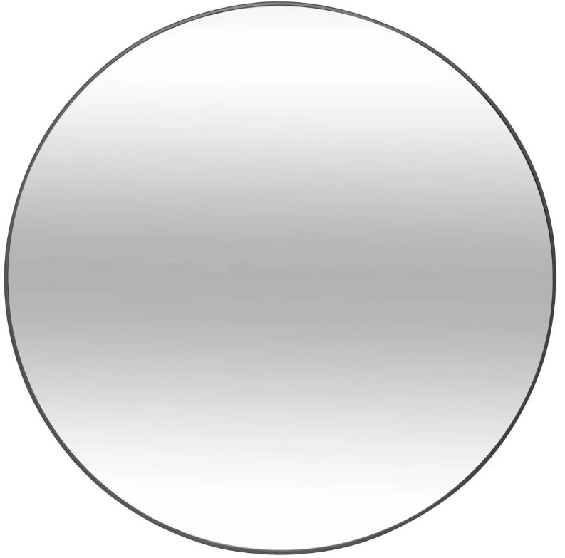 Miroir rond cerclé d’aluminium noir à fixer au mur.